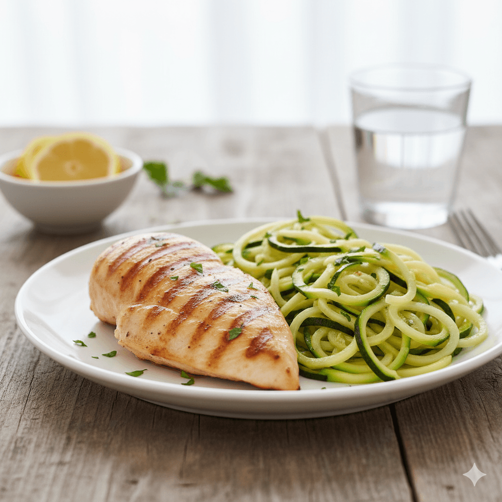 ➡️ Remplace les féculents par des légumes ou une salade.