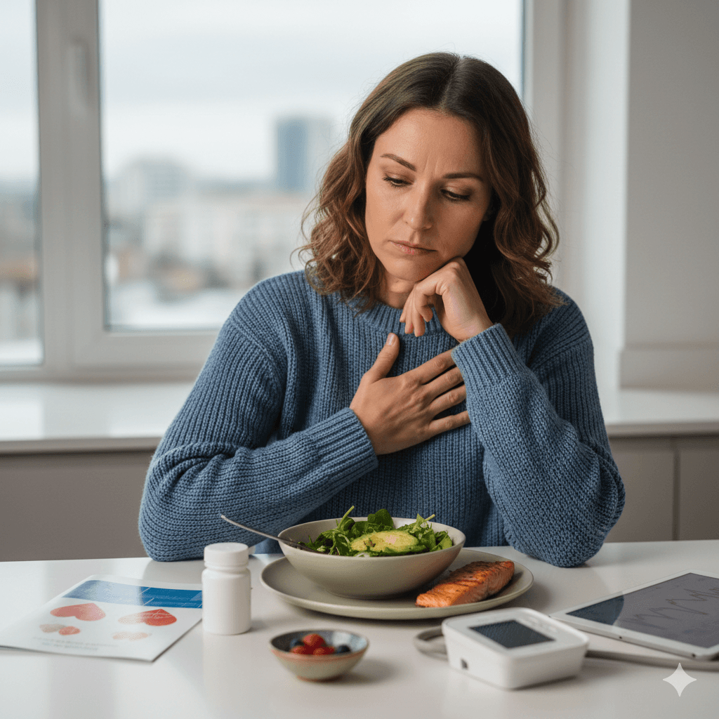À l’approche de la péri-ménopause ou de la ménopause, certaines variations du cholestérol peuvent apparaître, même sans changement alimentaire majeur.