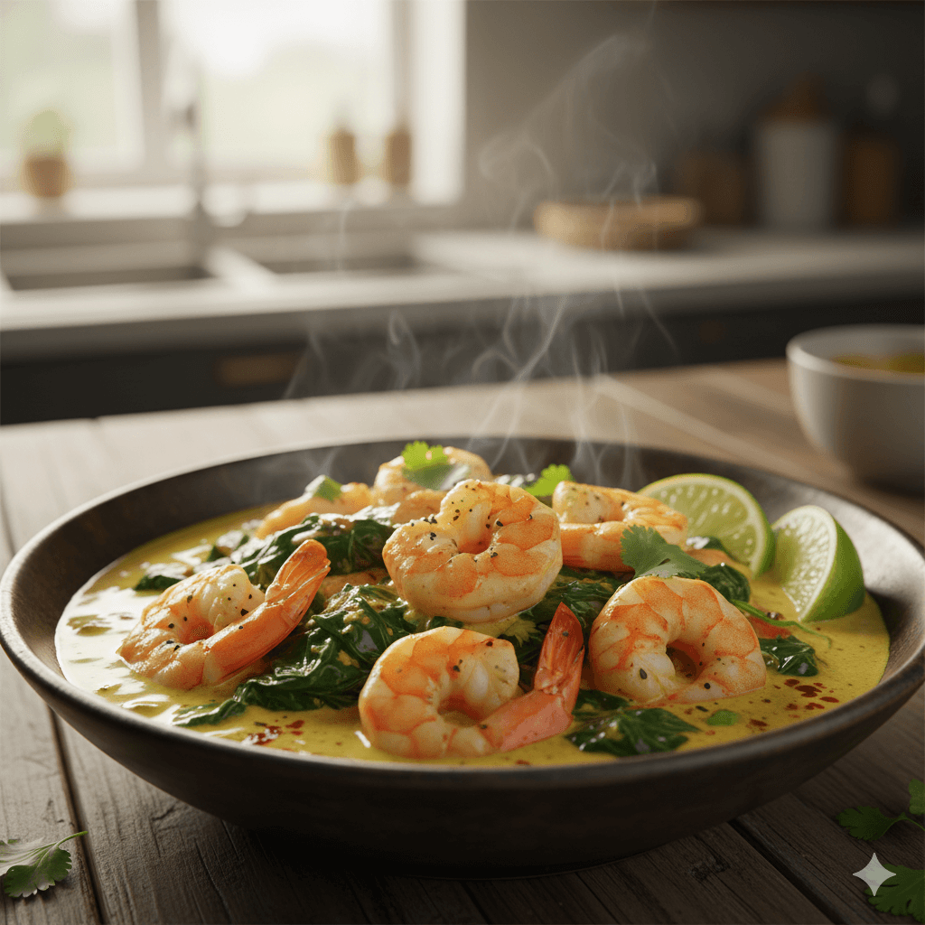 Crevettes au curry & lait de coco :