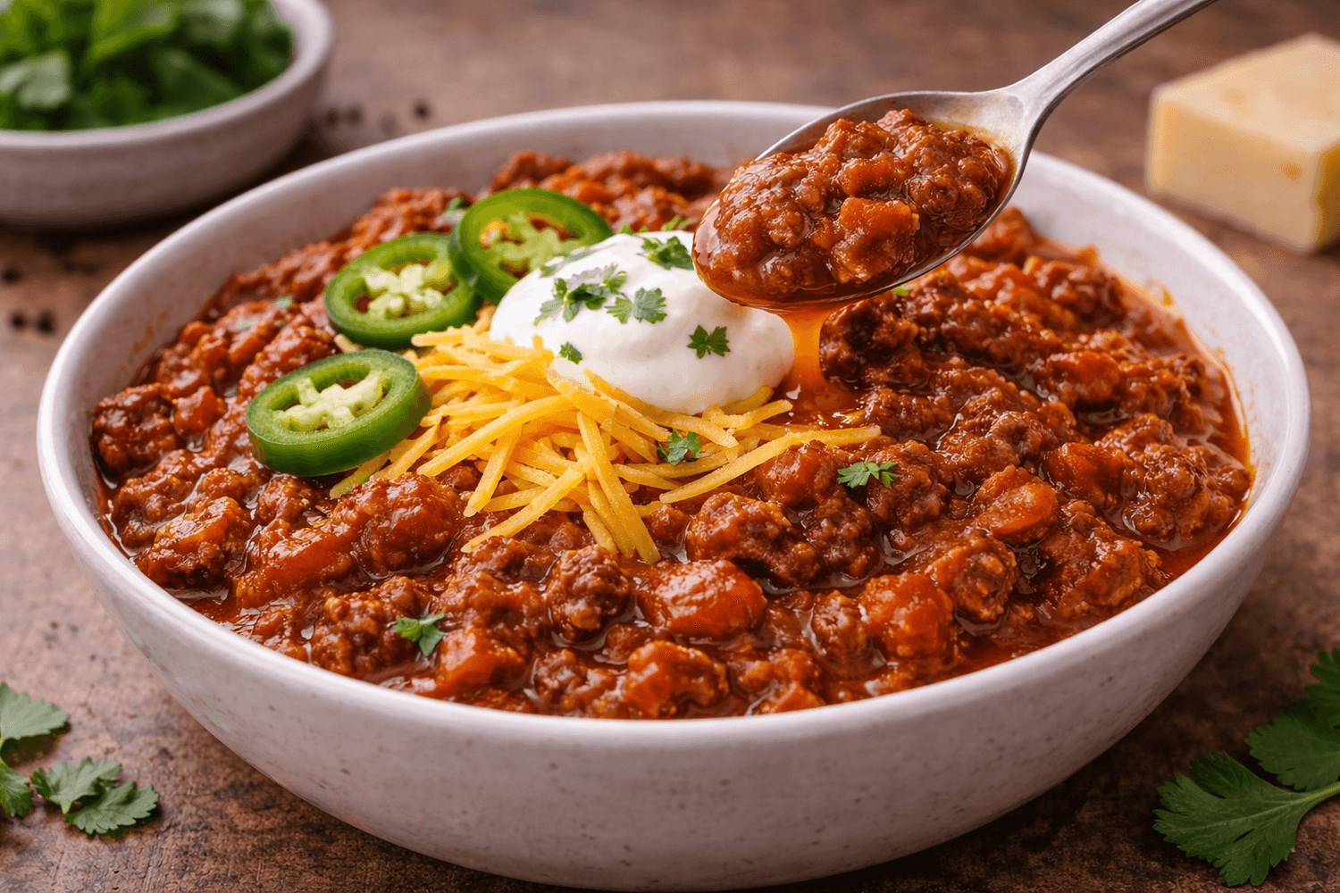 Un chili keto maison sans haricots, riche en viande et en épices, parfait pour un repas complet, nourrissant et convivial.